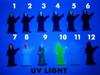 You asked, so he's back. The Crypt Creeper returns. He's a 100% bootleg freak from the board game, but I have made him better. That's the whole point of bootlegging right? Anyway... Most of these little dudes are double pour (meaning that they have basically been cast twice - two resin batches, twice in the pressure pot). Their fleshless faces glow like the sun (green/blue more than red/orange) in the dark and some even glow more under UV. No two are the same, just like me and you.